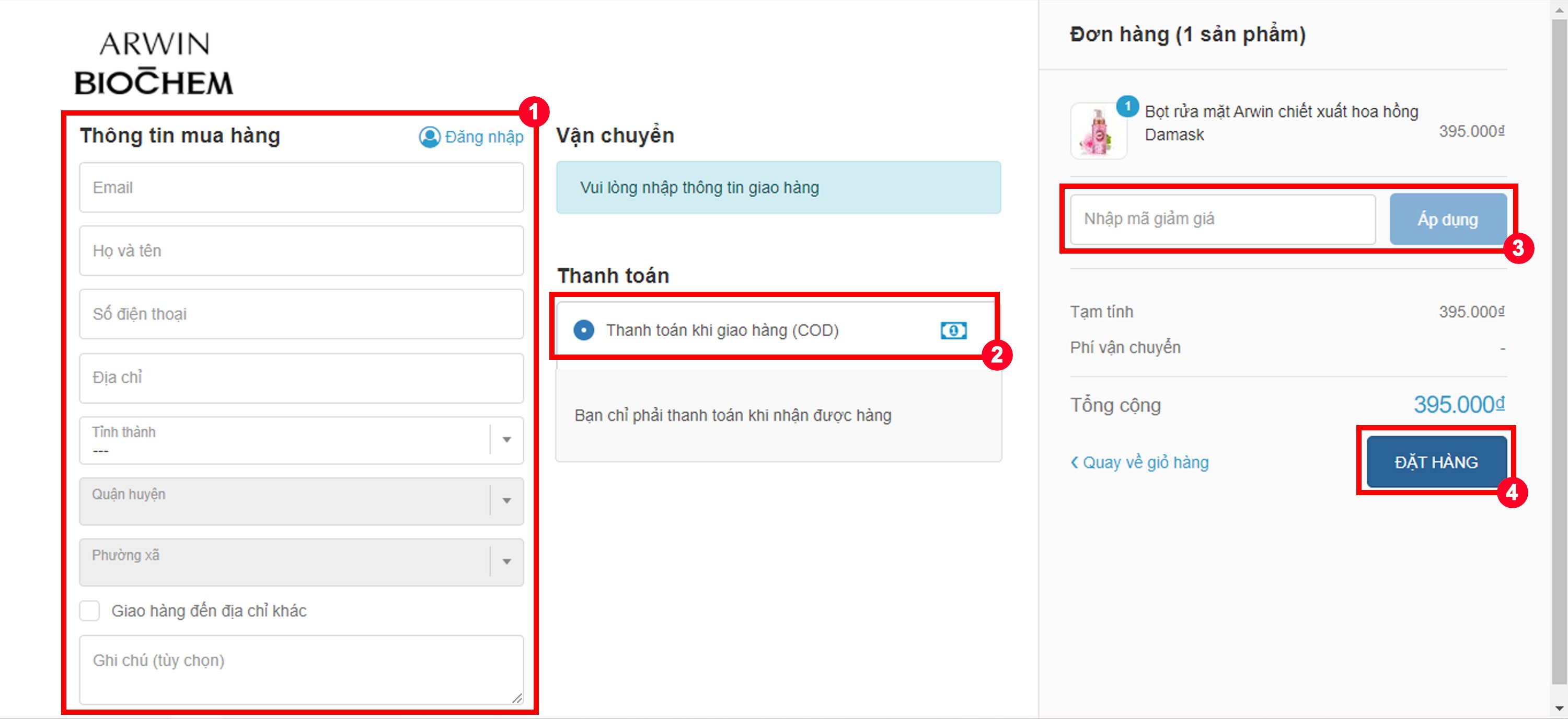 – Với các đơn hàng đã nhận hàng và thanh toán, ARWIN BIOCHEM sẽ chuyển khoản cho khách hàng sau khi đã nhận được hàng khách trả.