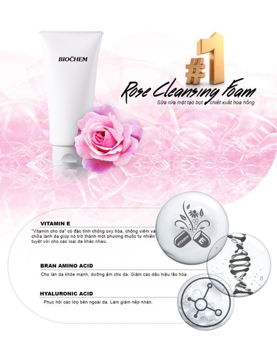 SỮA RỬA MẶT BIOCHEM CHIẾT XUẤT HOA HỒNG - ROSE CLEANSING FOAM